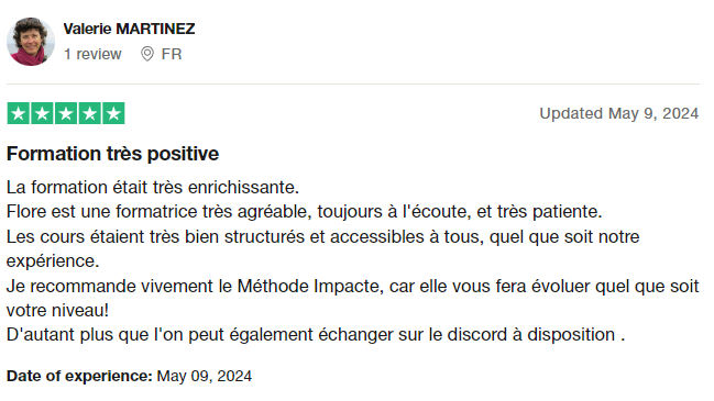 Je recommande vivement le Méthode Impacte, car elle vous fera évoluer quel que soit votre niveau!
